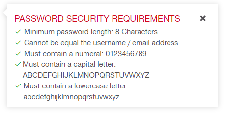 - Create a password with the security requirements shown below